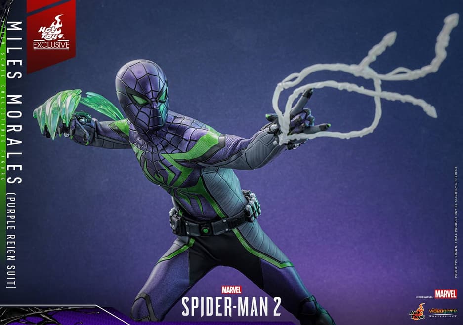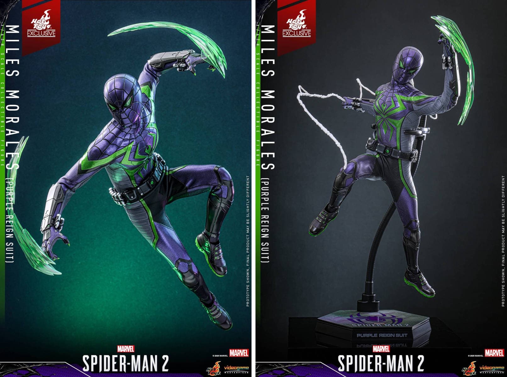 Сотрудники компании Hot Toys представили новую фигурку Майлза Моралеса из приключенческого экшена Marvel’s Spider-Man 2. Она выполнена в масштабе 1/6 и одета в фиолетовый костюм (Purple Reign).