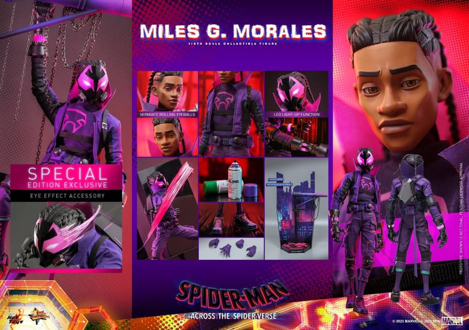 Также набор содержит перчатки с когтями, светодиодной подсветкой и подвижными пальцами, два баллончика с краской, аксессуар в виде атакующего эффекта, прикрепляемый к руке и ноге, фон персонажа в стиле поп-арт, аксессуар с цепями для диорамы и подставка. Плюс обладателям специального издания фигурки выдадут аксессуар в виде эффекта для глаз.