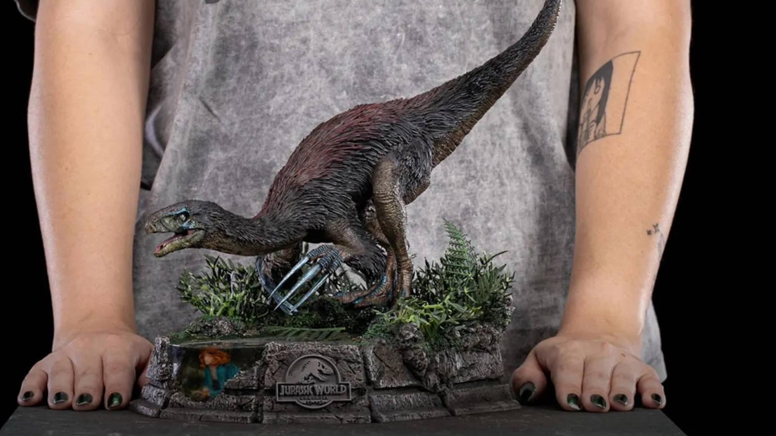 Компания Iron Studios выпустит статую, которая запечатлела момент, когда активистка по защите прав животных Клэр Диринг и теризинозавр из фильма «Мир Юрского периода: Господство» решили поиграть в прятки.