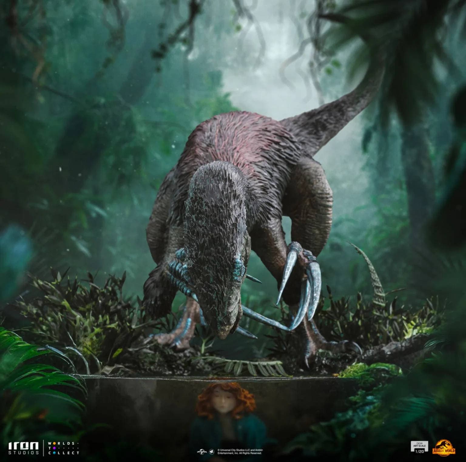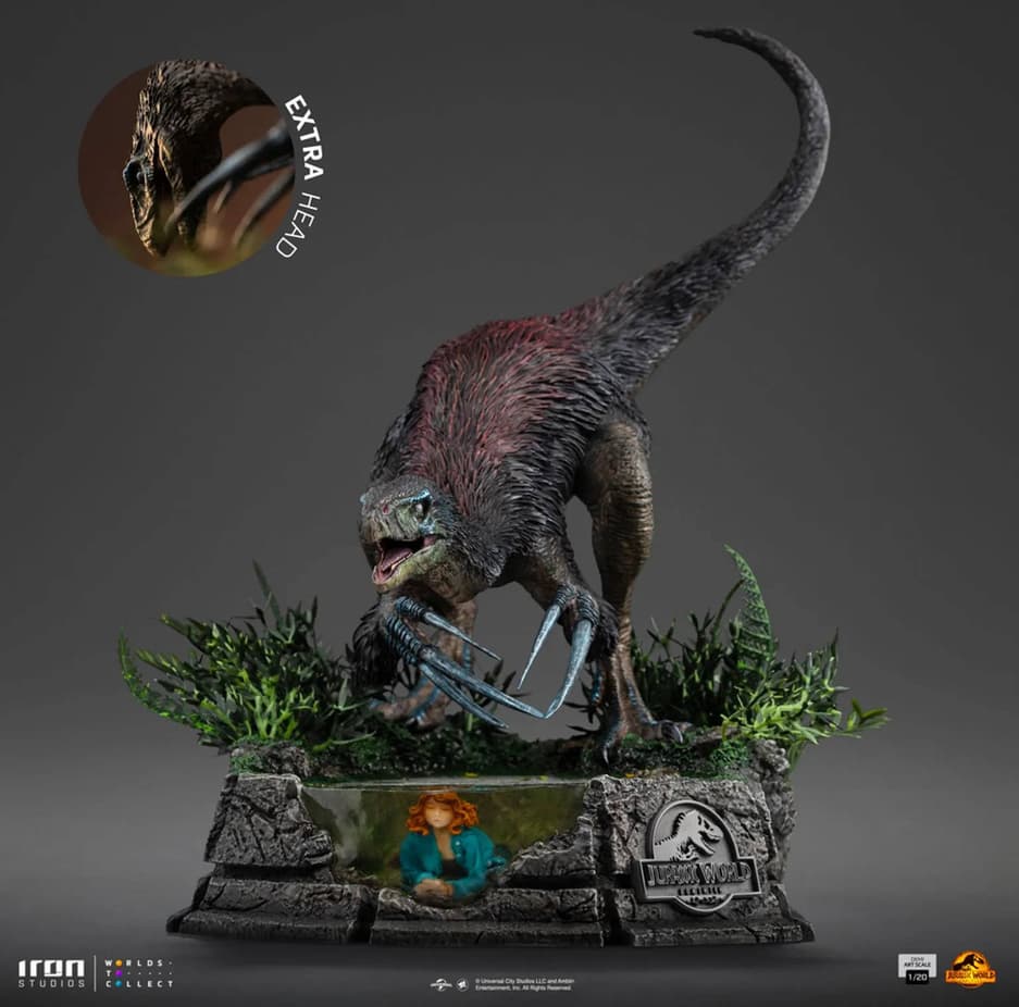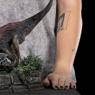 С помощью этой статуи Iron Studios постаралась воссоздать сцену, в которой активистка по защите прав животных и бывший операционный менеджер «Мира Юрского Периода» Клэр Диринг спряталась в болоте, чтобы спастись от враждебно настроенного динозавра с длинными когтями.
