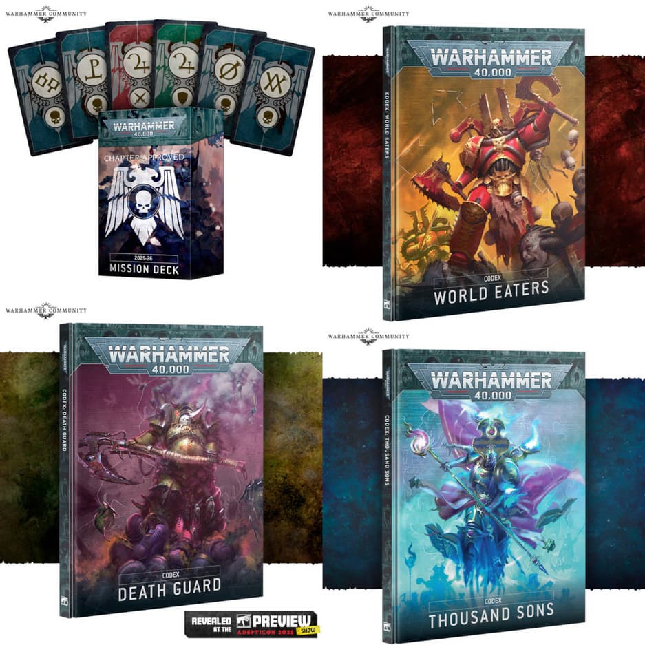 Кодексами обзаведутся Пожиратели Миров, Гвардия Смерти и Тысяча Сынов. Появится минька кхорнитского Slaughterbound (Связанный Резней или Смертоносный), нурглитского Lord of Poxes (Мастер Чумы) и тзинчитского Sekhetar Robot (Секхетарский робот).