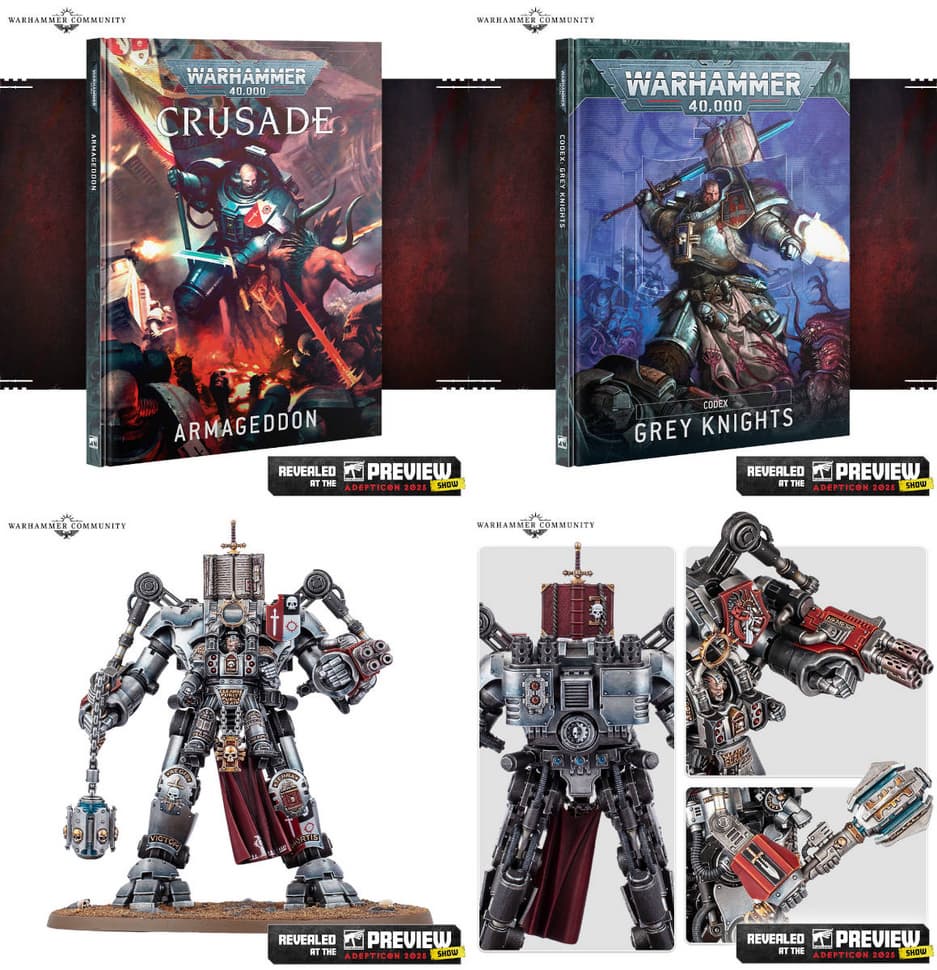 Будет представлен новый кодекс для Серых Рыцарей, обновленная модель Дреднайта и новая нарративная книга про кампанию Армагеддона (Warhammer 40,000 – Crusade: Armageddon).