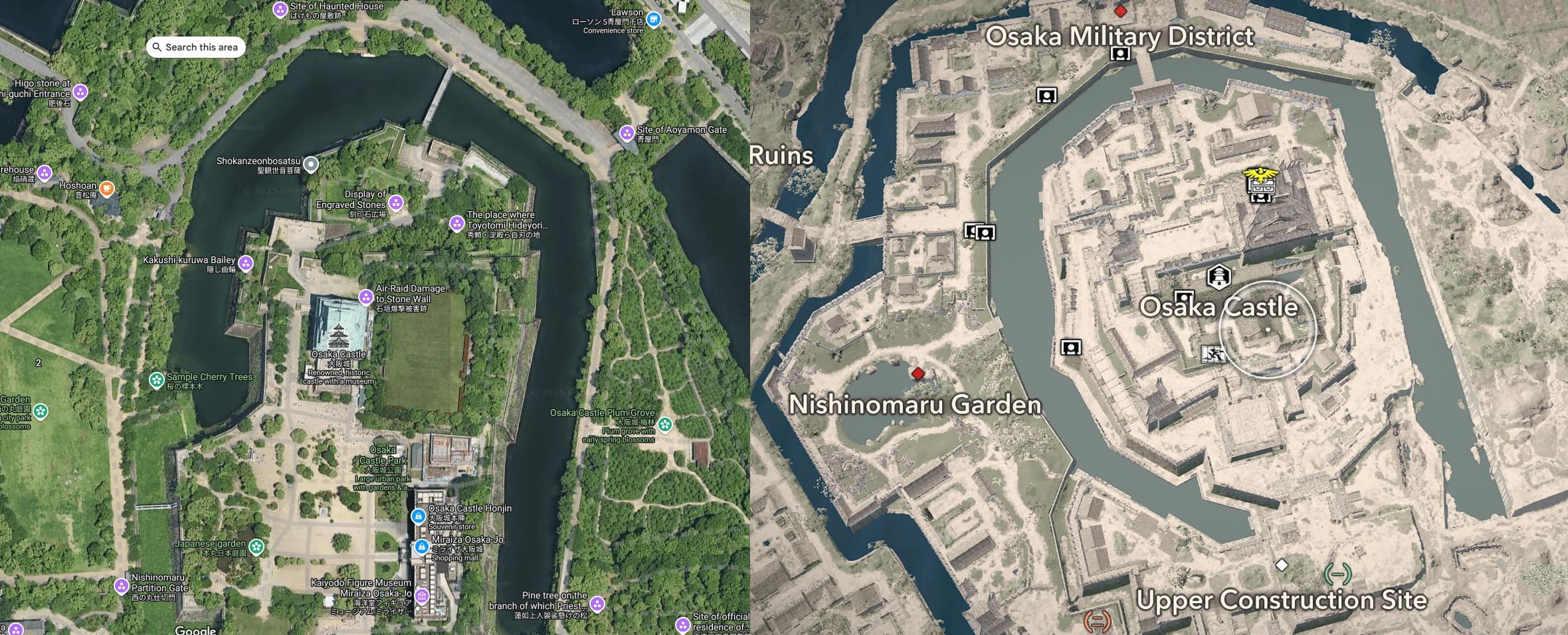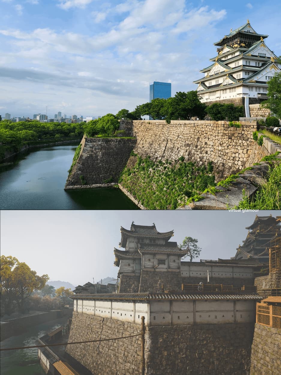 Один из игроков на форуме Reddit сравнил реальные фотографии замка Осака со сценами из игры и отметил, что Ubisoft удалось точно воссоздать архитектуру и атмосферу эпохи.