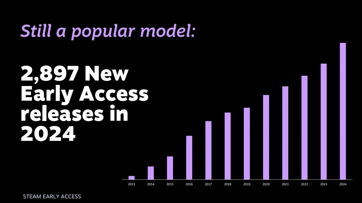 За 2024 год в Steam выпустили 2897 игр в раннем доступе. По статистике, более половины игр покидают стадию «ранний доступ» менее чем за год.