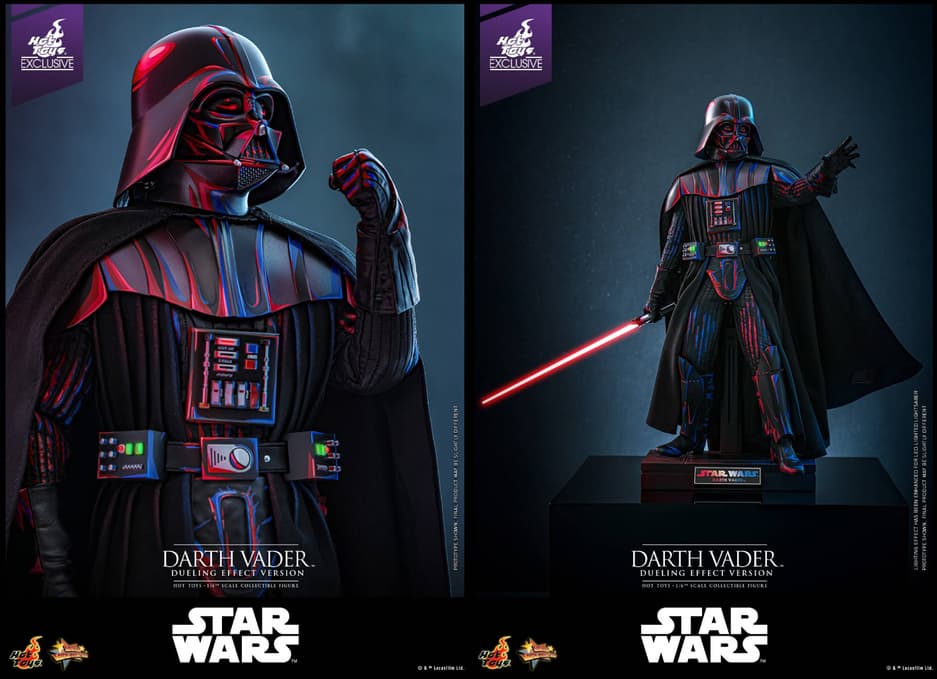 Компания Hot Toys представила новую фигурку Дарта Вейдера (Dueling Effect Version), выполненную в масштабе 1/6 и уникальном дизайне, который имитирует красно-синие цвета от световых мечей во время дуэли.