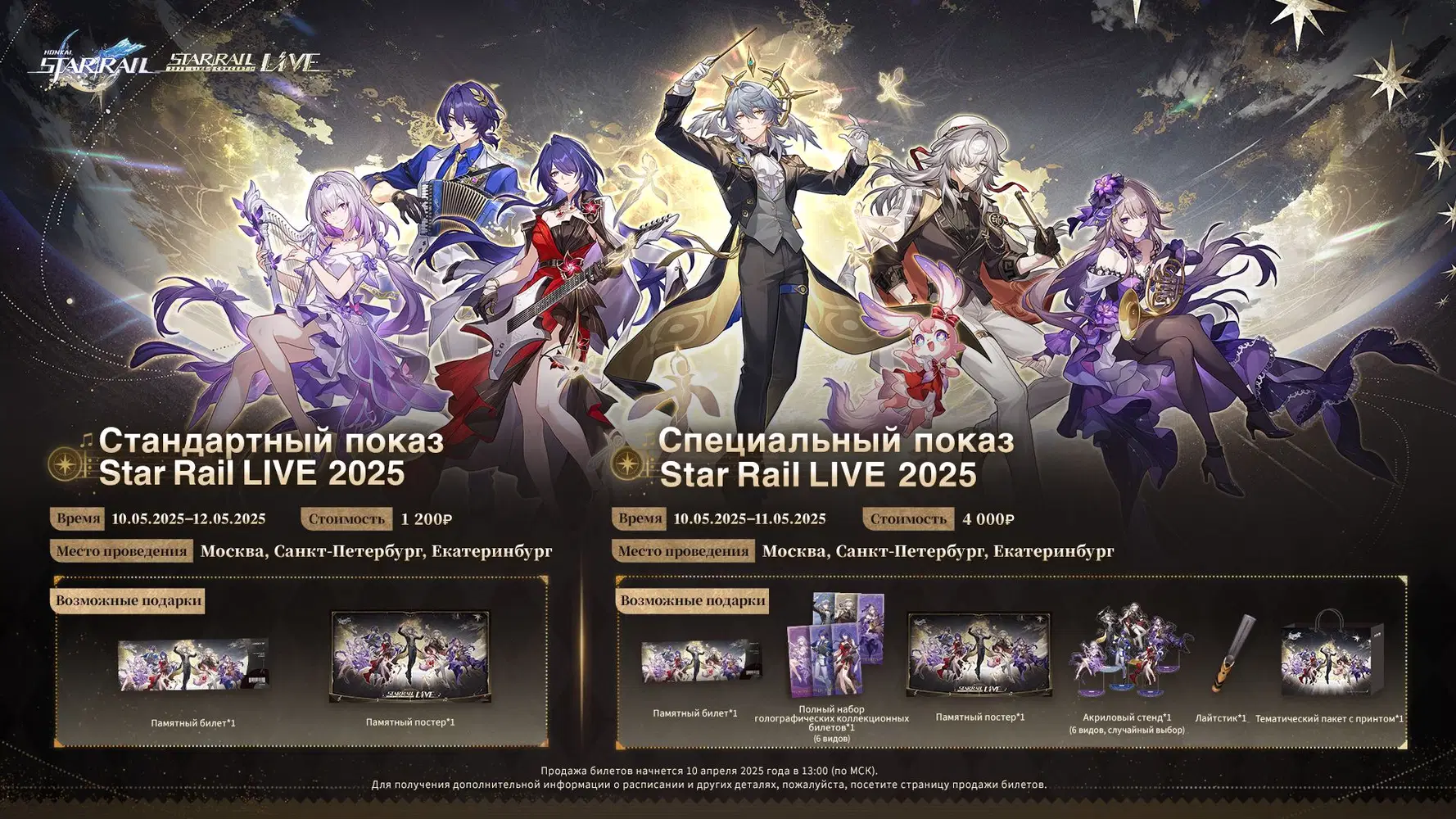 Старт продажи билетов Star Rail LIVE 2025 ожидается 10 апреля в 13:00 по московскому времени.