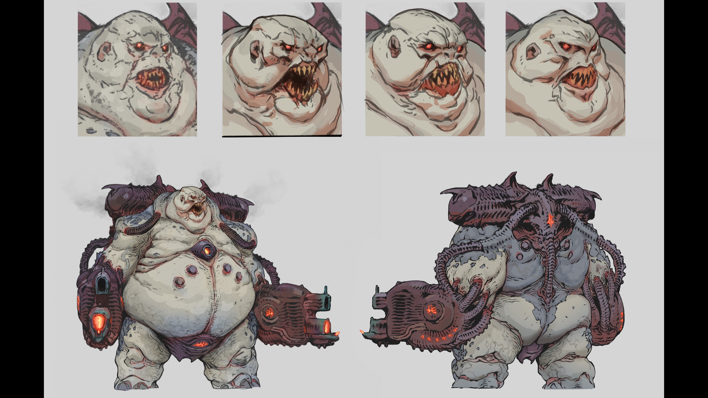 В центре внимания оказался Манкубус (Mancubus). Если сравнивать концепт с версией из DOOM 3, то здесь он выглядит более пышным и укреплённым.