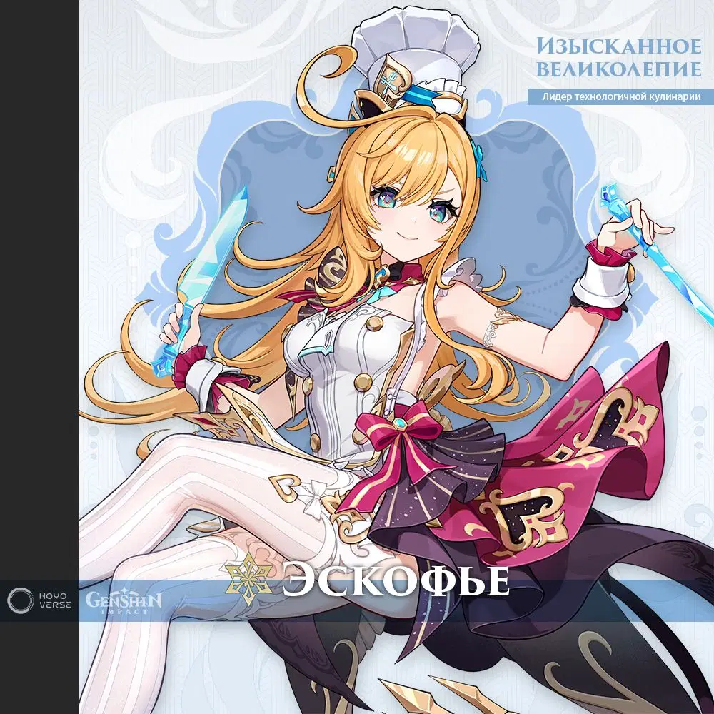 Эскофье это девушка-повар с элементом Крио. Её технологичная кулинария пользуются широкой известностью во всём Фонтейне: