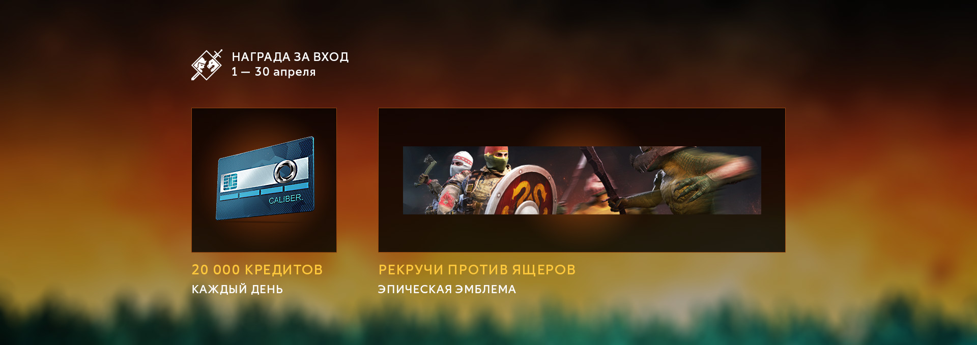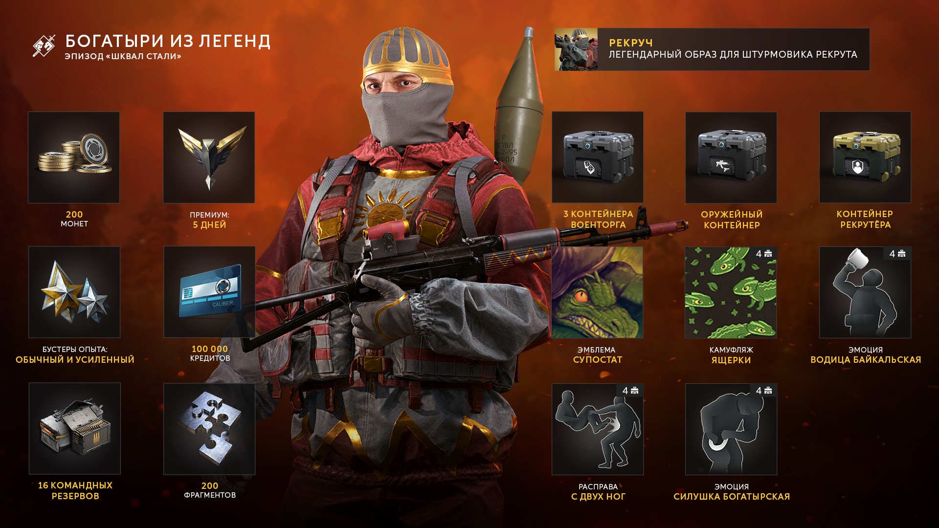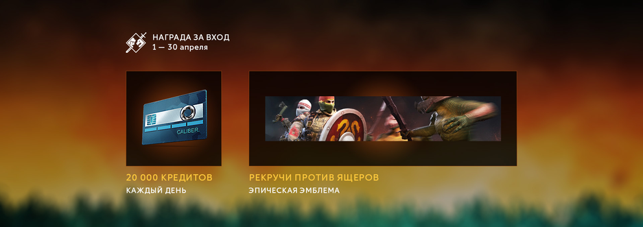За вход предлаагют подарки — кредиты и эпическую эмблему «Рекручи против ящеров». Также создали боевой пропуск и рассказали про специальный режим: