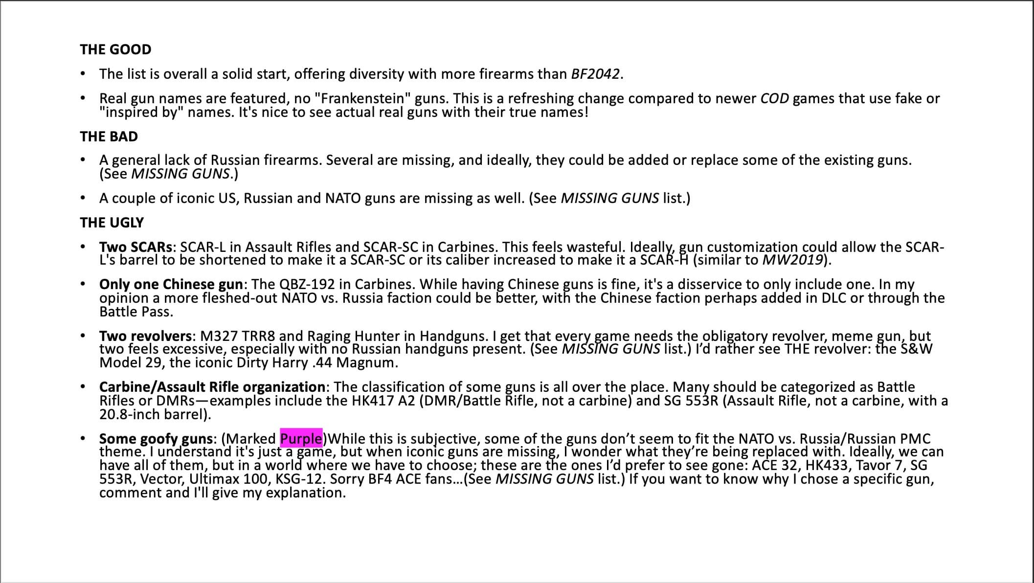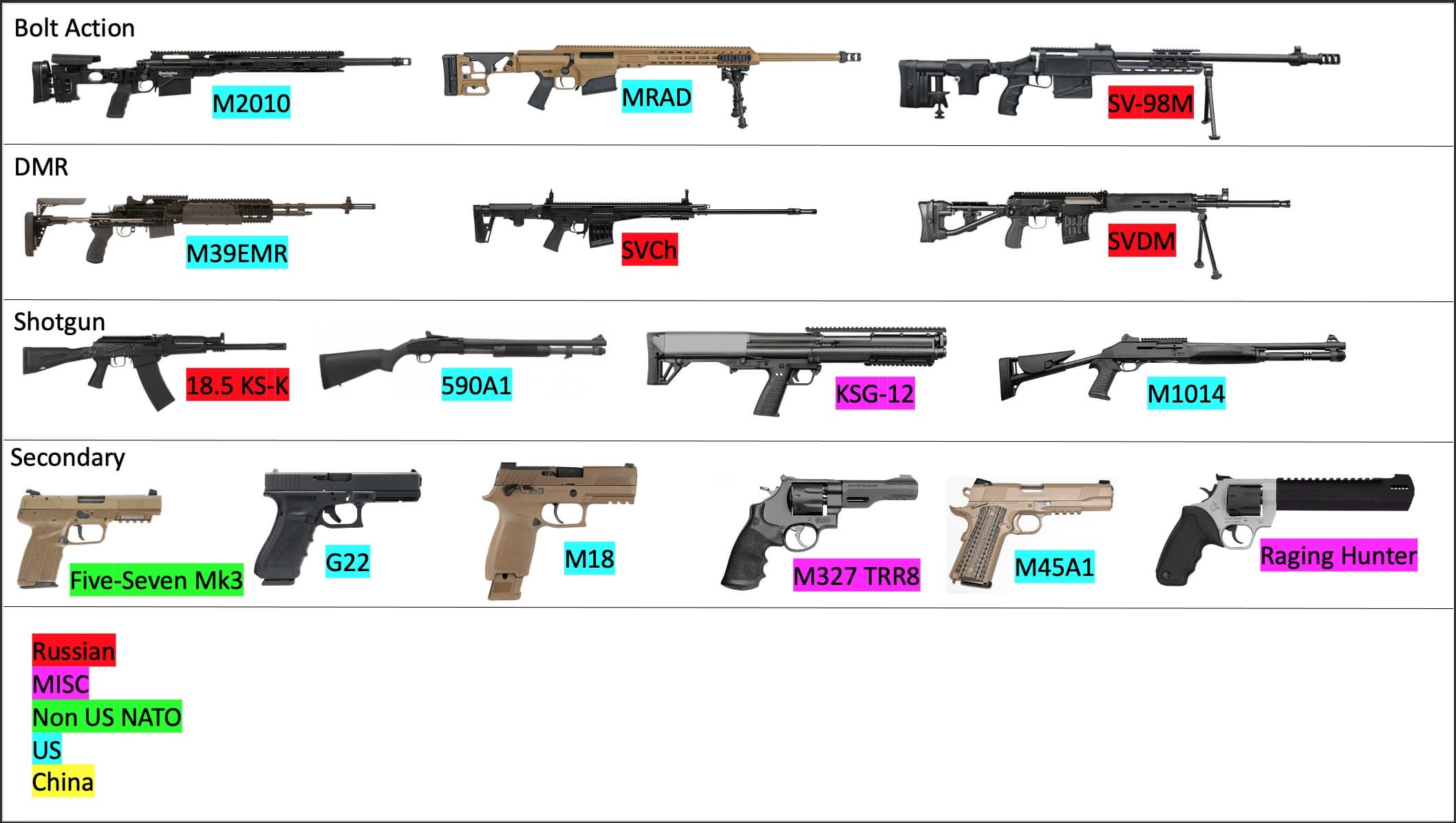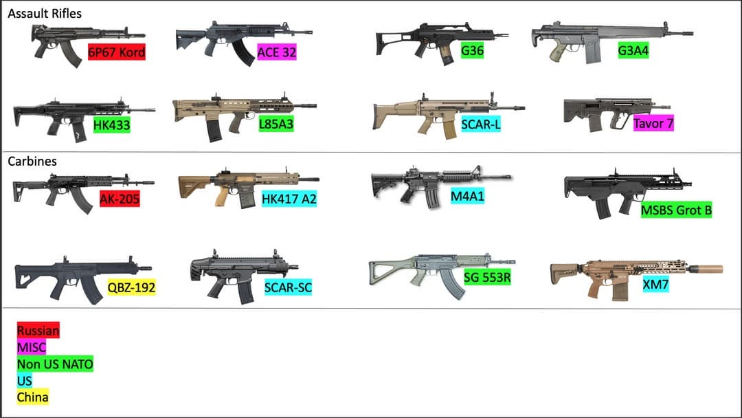 В списке не хватает некоторых популярных моделей, например, оружия восточного блока или AUG, но комментаторы положительно оценили разнообразие.