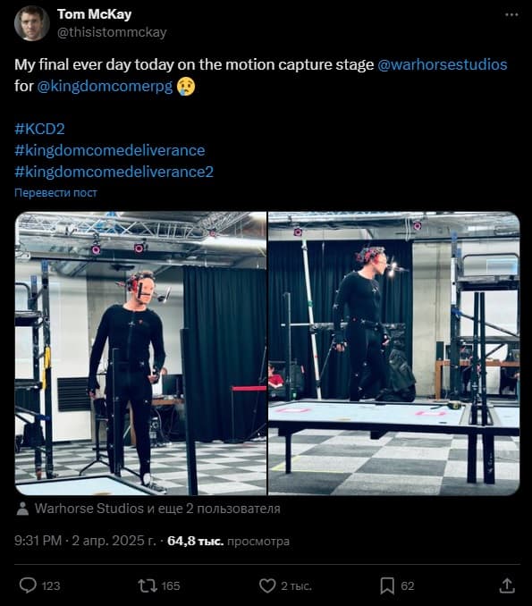 Том МакКей, исполнивший роль Генриха в Kingdom Come: Deliverance 2, завершил работу в студии Warhorse. Он сообщил об этом в сети X, добавив фото с последнего дня записи в студии захвата движения.
