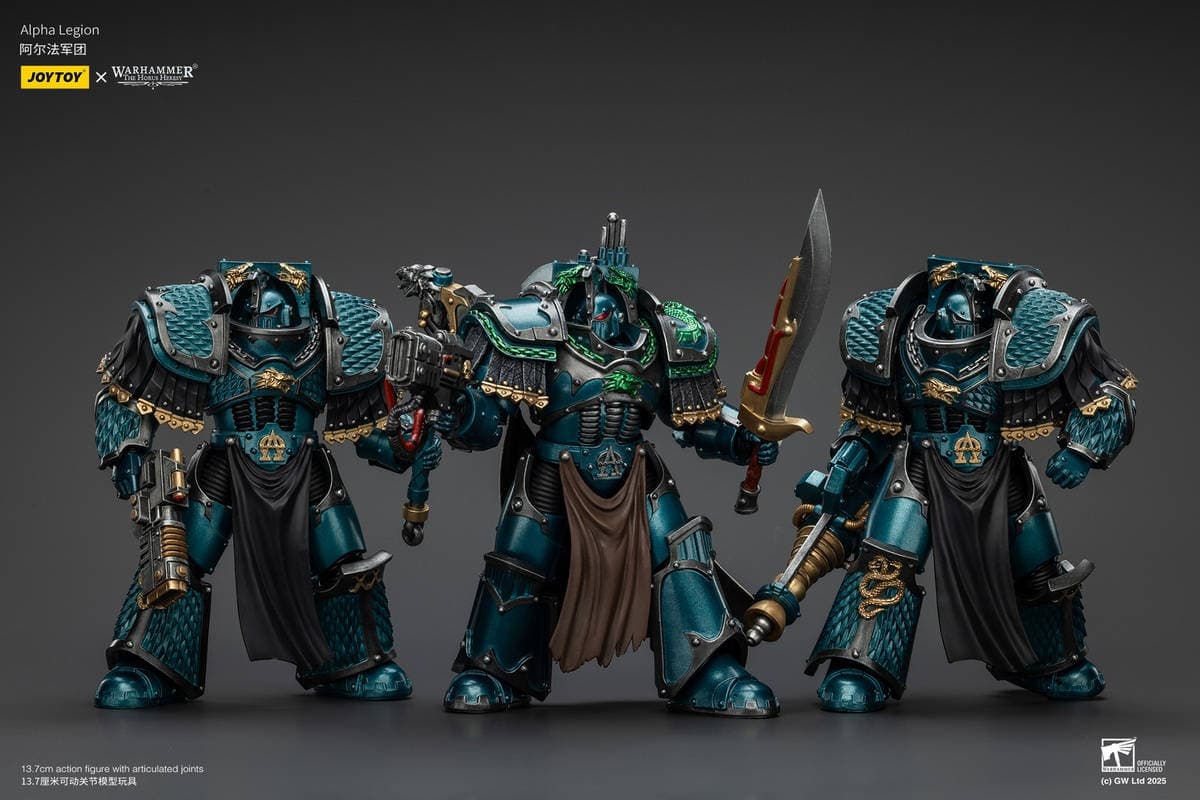 У поклонников Альфа-Легиона из вселенной Warhammer: The Horus Heresy сегодня большой праздник, так как компания JoyToy открыла предзаказ на новые фигурки – лернейских терминаторов с волкитным разрядником и конверсионным излучателем, и претора в терминаторском доспехе «Катафракт».