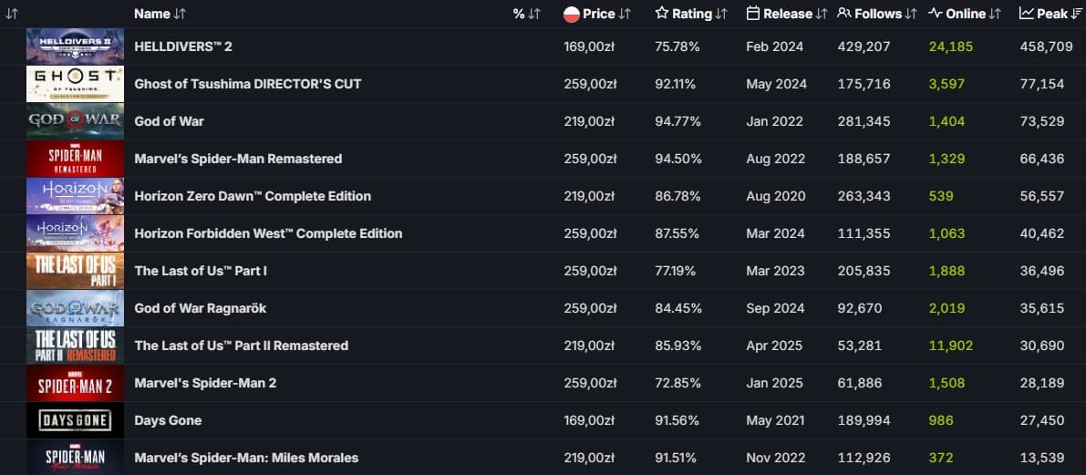 Пока до лидеров PlayStation-портов далеко, только девятое место, но игра уже обошла несколько громких проектов и укрепила позиции серии на ПК.