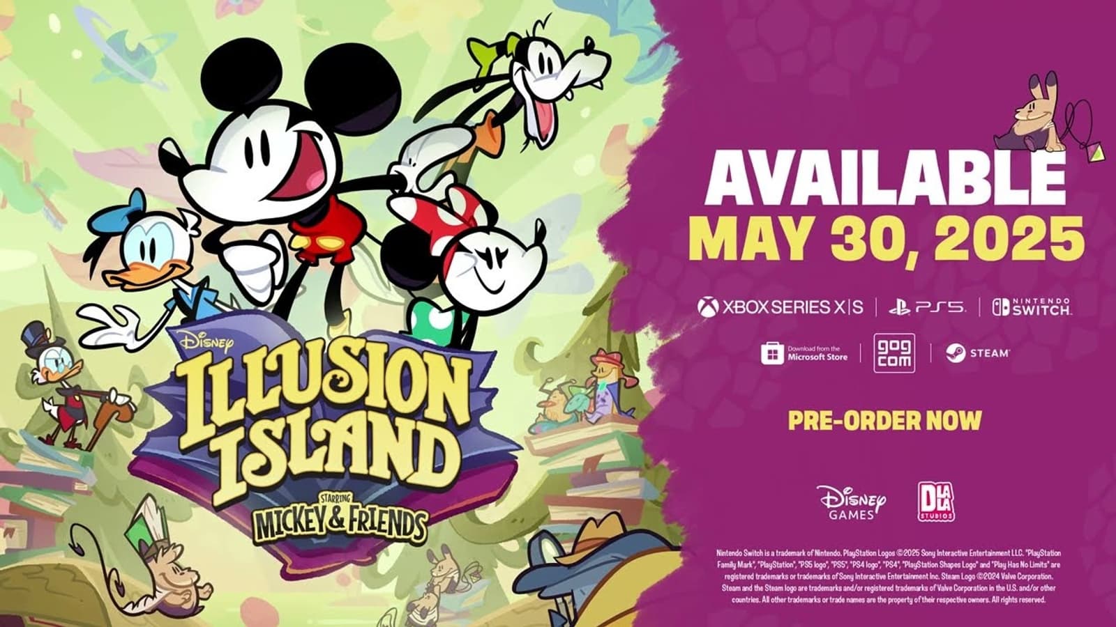 Disney Illusion Island — красочный кооперативный платформер на 1–4 игроков. В игре предложат прыжки по платформам, головоломки, бои с боссами, исследование биомов и взаимодействие с необычными персонажами. Для прохождения доступны уникальные навыки вроде «Жабьего прыжка», «Рыбного броска» и «Дружеских объятий».