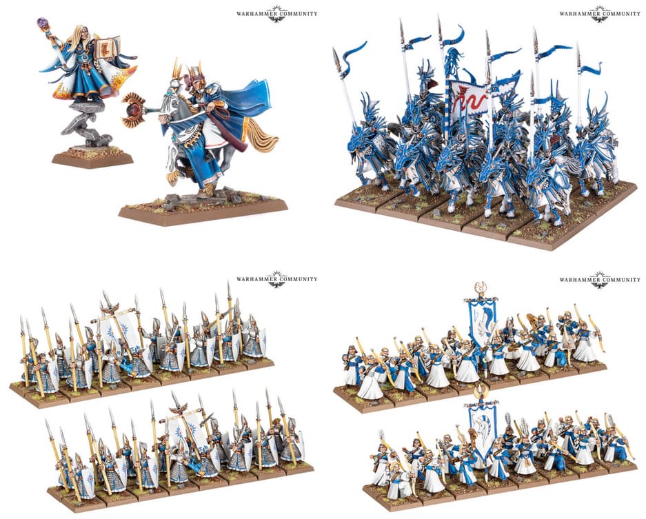 У фанатов настолки Warhammer The Old World появится возможность купить пластиковые миниатюры юнитов из армии высших эльфов: магов, лучников, копейщиков, колесницы Тиранока, драконьих принцев Каледора и скайкаттер Лотерна (летающая колесница).