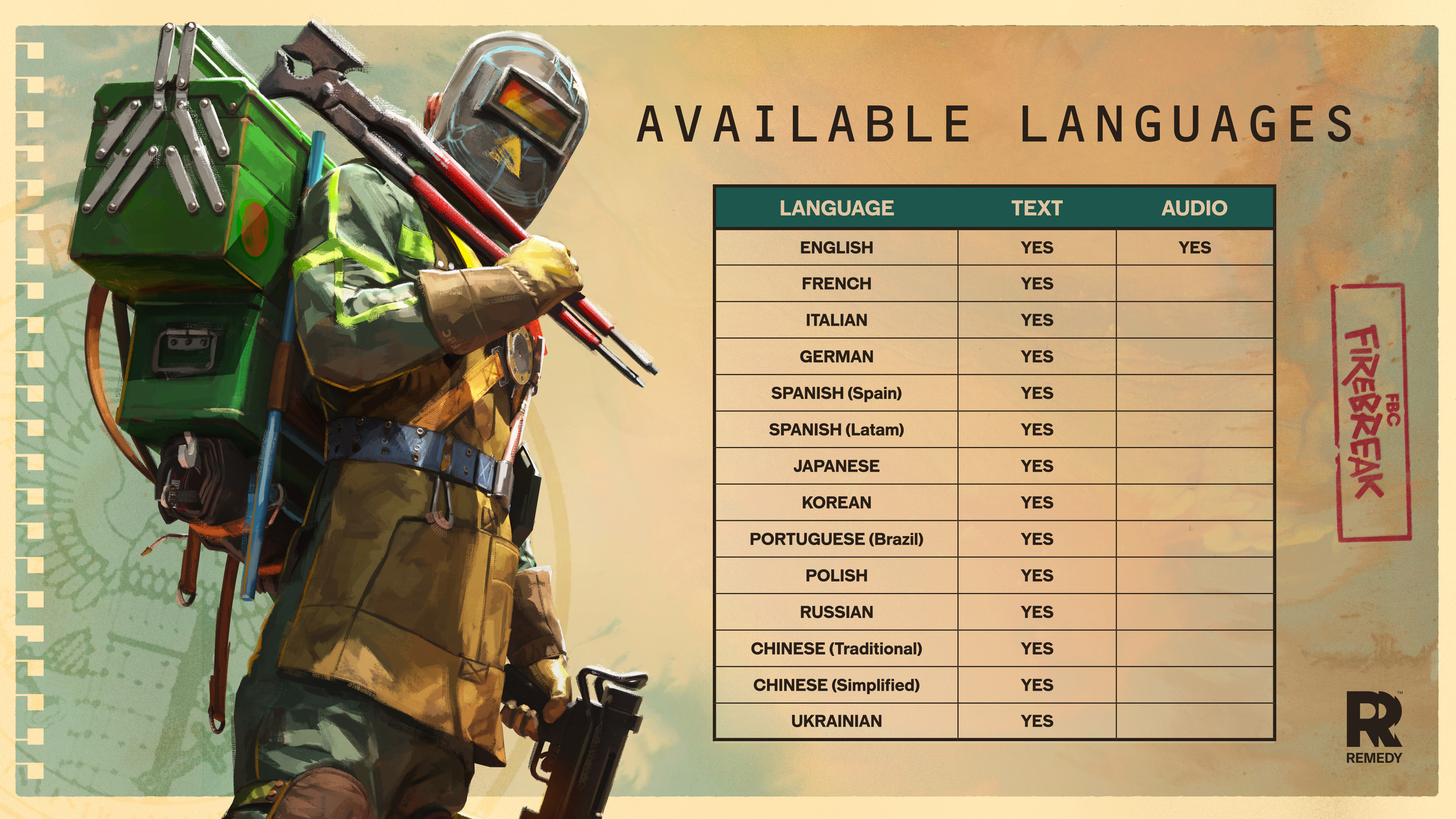 Remedy Entertainment представила в социальной сети список поддерживаемых языков — заявлен перевод на русский (текст), озвучка будет доступна лишь на английском языке.