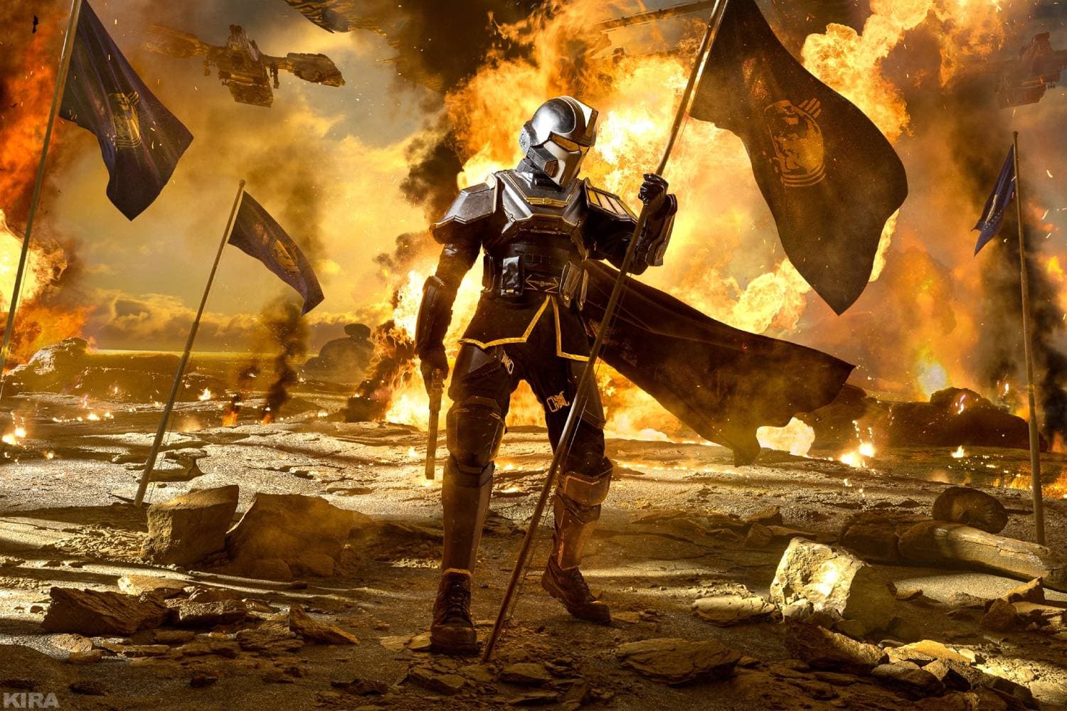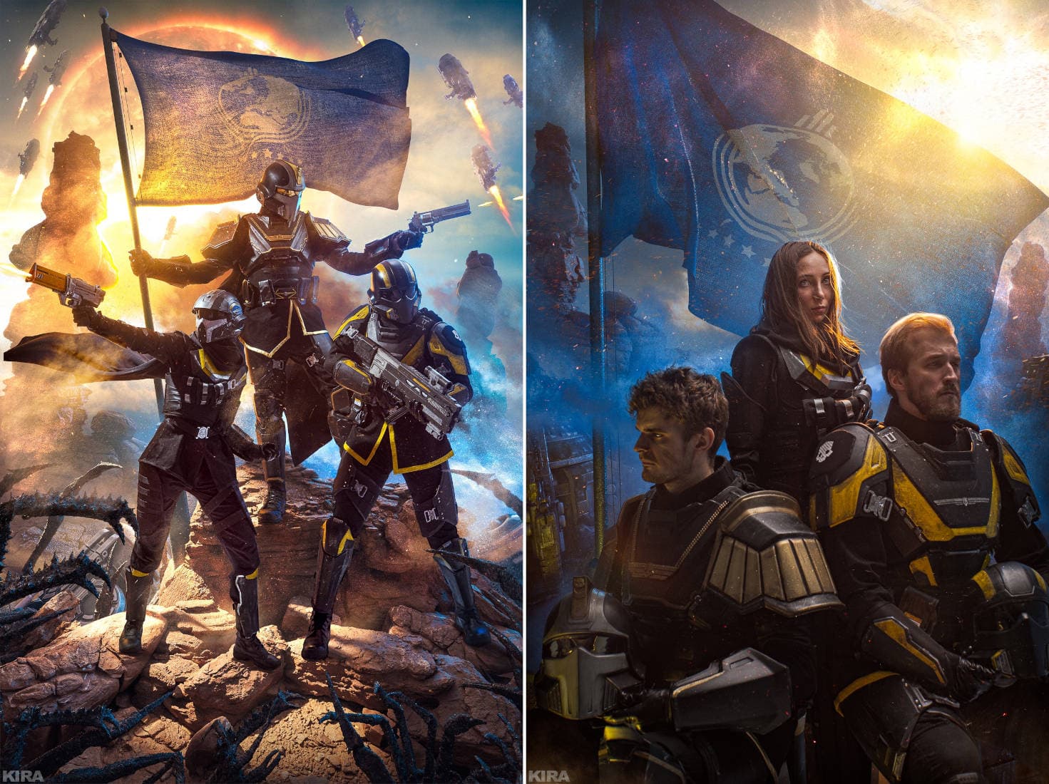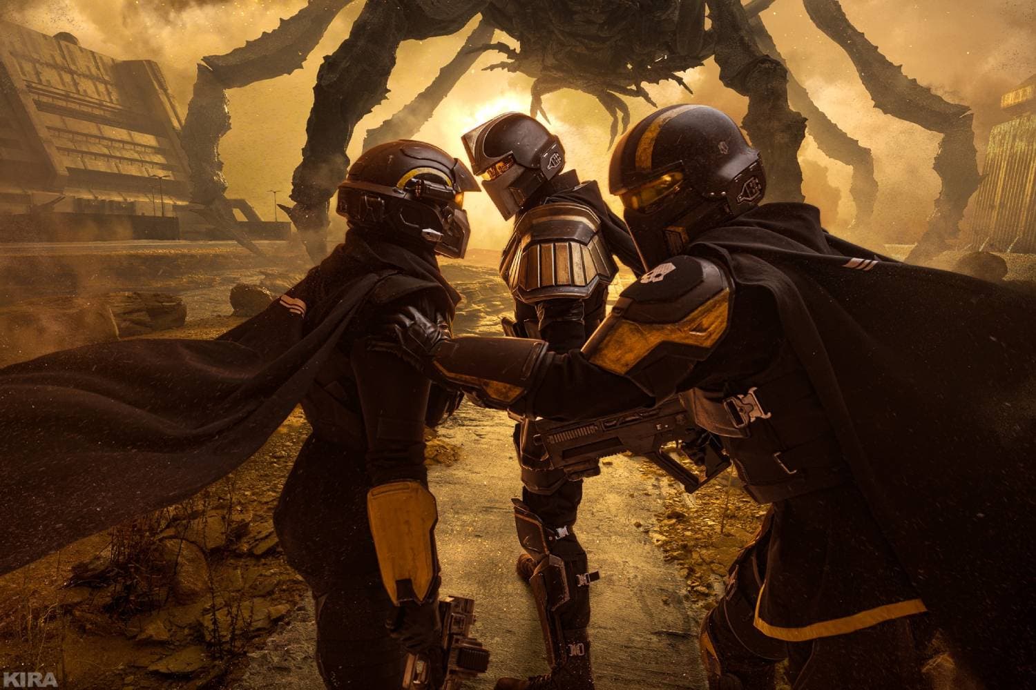 Она провела фотосессию, во время которой косплееры No.Panacea, Markus и FroneDK превратились в Адских Десантников из кооперативного шутера от третьего лица Helldivers 2, сражающихся с надоедливыми терминидами.