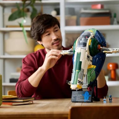 В наборе, а купить его разрешат за $299 (примерно 25 тысяч рублей), удастся обнаружить 2970 дателей и две фигурки – Джанго Фетта и молодого Бобба Фетта. Высота корабля равна 19 см, ширина – 39 см, глубина – 44 см.