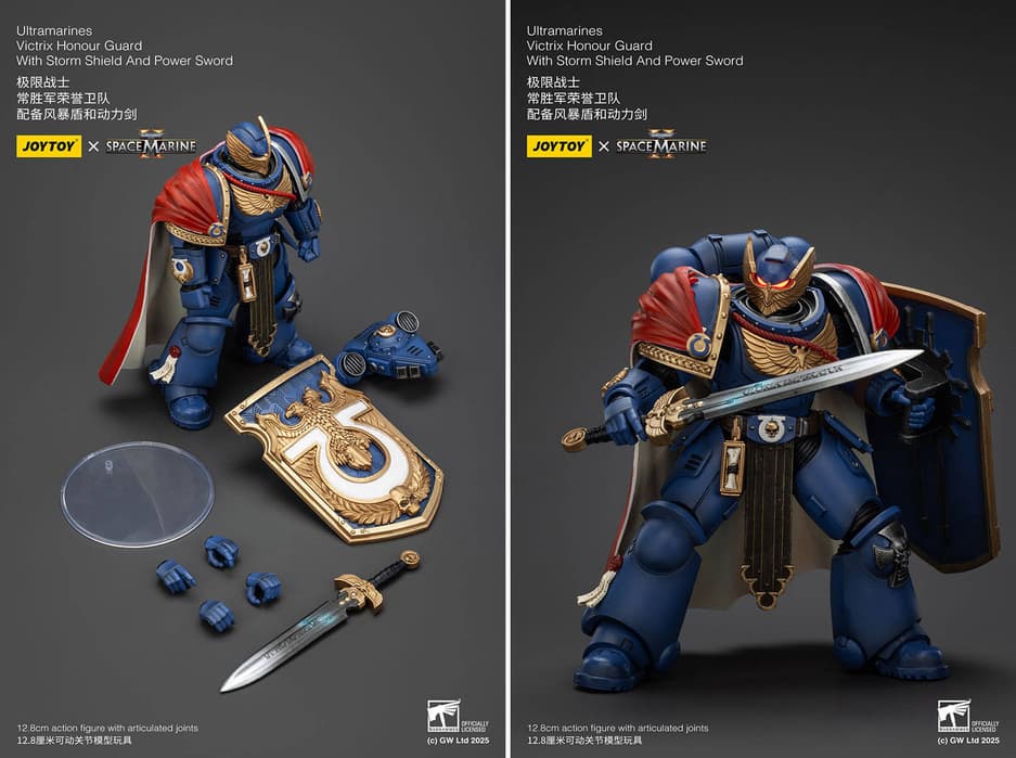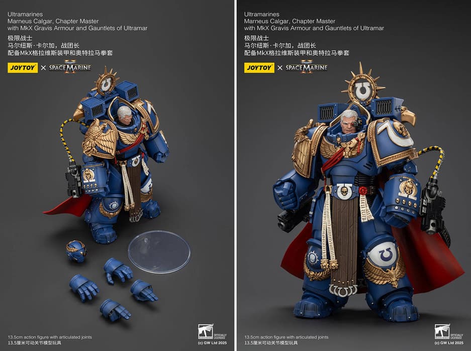У коллекционеров в этом году благодаря компании JoyToy получится раздобыть новые-обновленные фигурки магистра ордена Ультрамаринов Марнея Августа Калгара и почетного стража Ультрамаринов из шутера Warhammer 40,000: Space Marine 2.