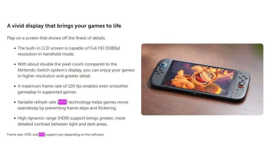 Тем временем VRR по-прежнему указан как доступный для портативного режима. По словам Nintendo, технология поможет избежать просадок и мерцания на экране самой консоли.