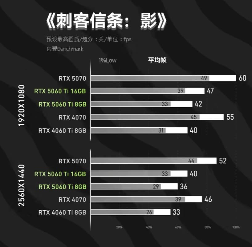 Но не всё так плохо. В играх, где объём VRAM не критичен (например, Assassin’s Creed: Shadows), различий между 8 и 16 ГБ почти нет. Ubisoft в требованиях рекомендует RTX 3060 Ti 8 ГБ — и новая карта показывает себя на уровне.