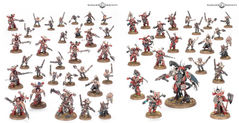 «Пожирателям Миров» завезут наборы с миниатюрами «Боевая сила Gorestorm Slaughterpack» и «Боевой патруль World Eaters», содержащие демон-принца, мастера Казней, берсерков Кхорна, джахалов и восьмеричных.