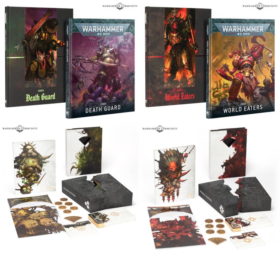 Фанаты настольной игры Warhammer 40,000 смогут раздобыть обычный, коллекционный и лимитированный кодексы вышеуказанных армий, металлические жетоны, карточки миссий, два кусочка медальона Хаоса, раздвижные коробки, кубики и фракционные карточки с правилами.