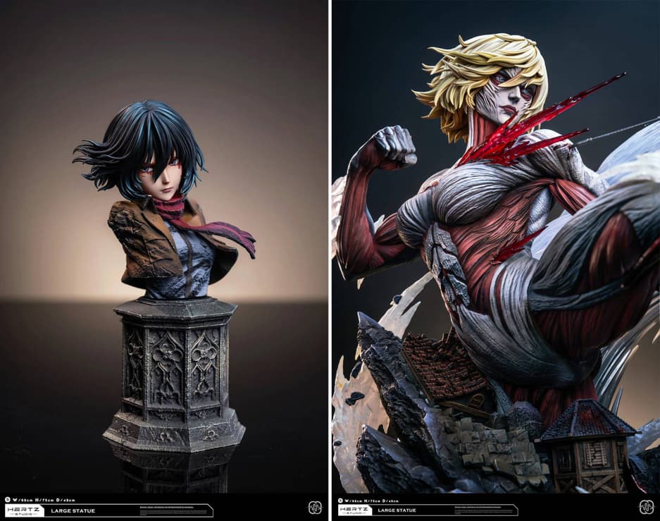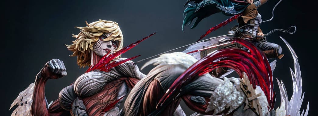 В этом году коллекционеры смогут заполучить новую статую от компании Hertz Studio, которая запечатлела бой между Энни Леонхарт в форме «Женской Особи» и Микасы Аккерман.