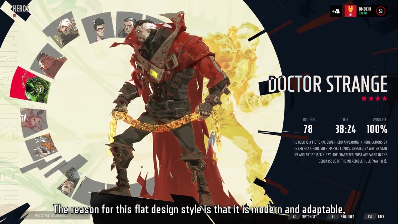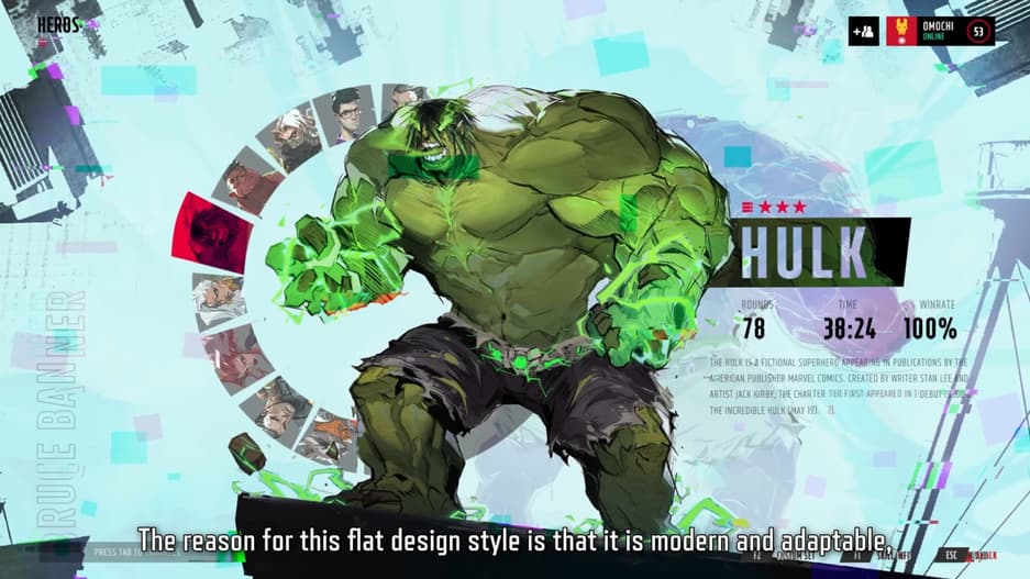 Меню персонажей было оформлено в стиле масляной пастели с грубыми и выразительными портретами Доктора Стрэнджа, Халка и Шторм. Пользователи сравнили эти изображения с визуальной стилистикой Disco Elysium.