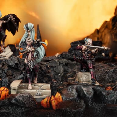 Банда играет через Ритуалы Предсказаний, что накидываются в начале каждого хода, и содержит следующие миниатюры: провидец – Kaerna Vix, убийцы – Tazari и Krieta, арбалетчик – Azphel.