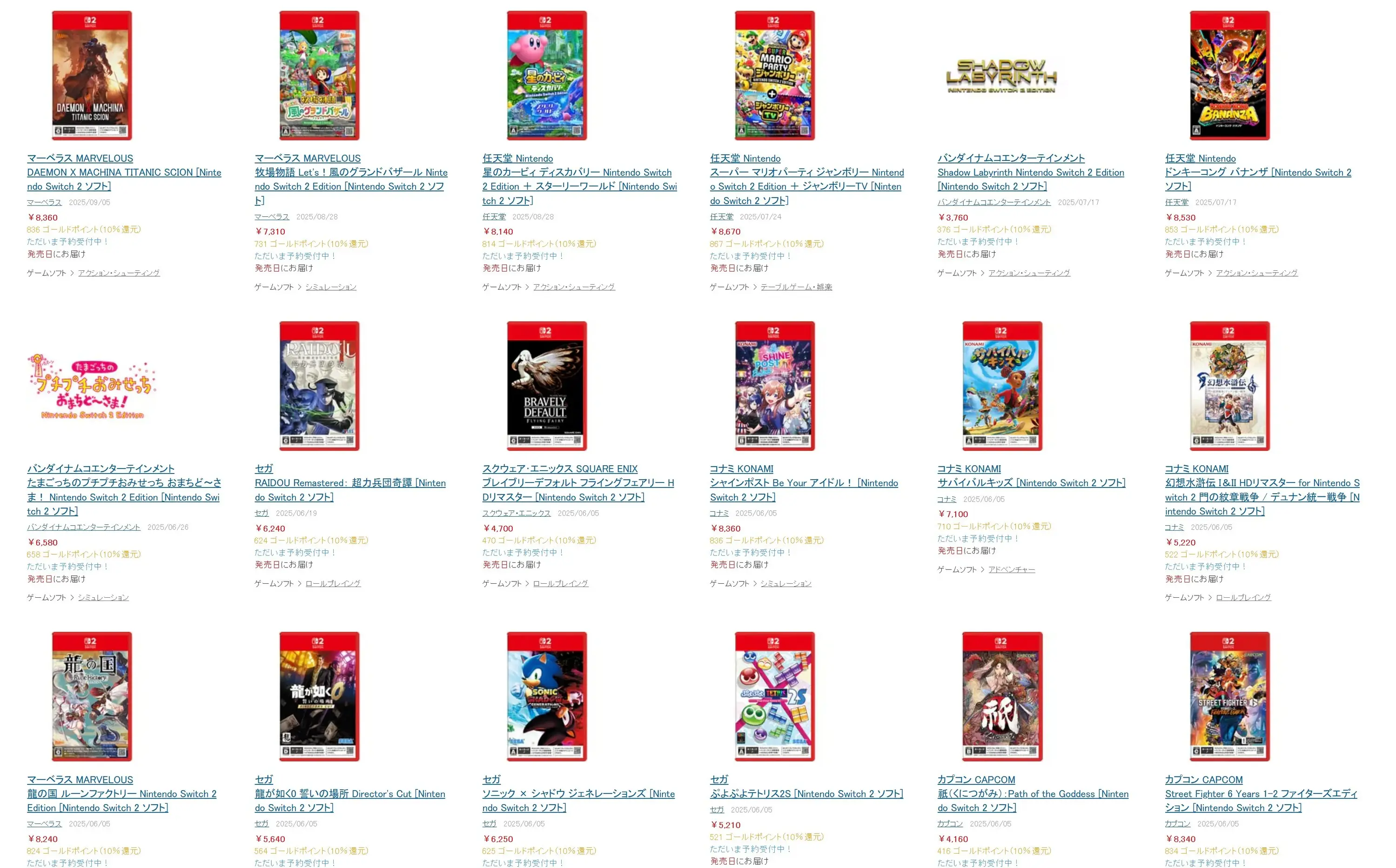 Из 11 сторонних игр, представленных в магазине Yodobashi с обложками, все имеют логотип Game-Key Card. Исключение составляют два проекта Marvelous — Rune Factory: Guardians of Azuma и Story of Seasons: Grand Bazaar, которые даже не являются полноценными играми для Switch 2, просто версии для оригинальной Switch с кодом на загрузку улучшенной версии для новой консоли.