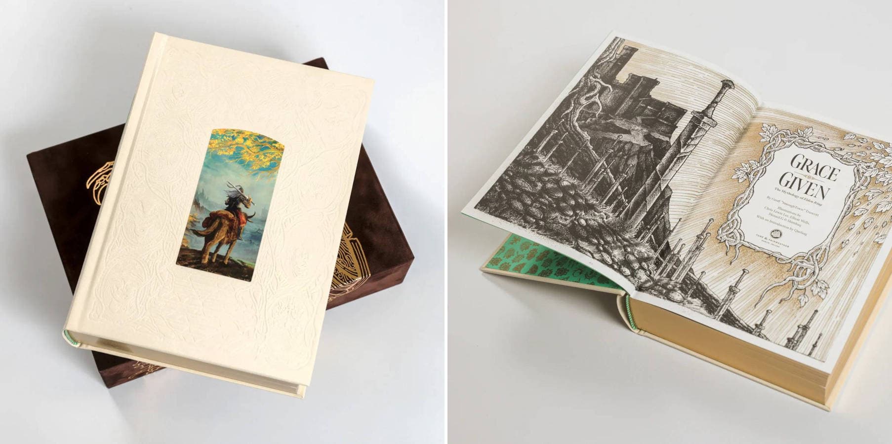 Автором книги выступил эксперт по лору игры Джефф «SmoughTown» Траскотт. «Мифология Elden Ring. Дарованная благодать» содержит множество иллюстраций и всевозможную информацию относительно вселенной серии, персонажей, локаций, вещей из дополнения Shadow of the Erdtree и не только.