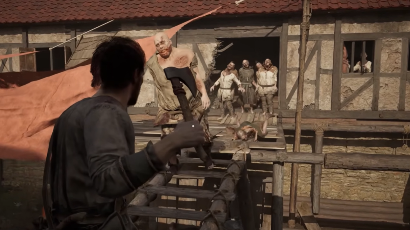 «Выкручивайтесь из сложных ситуаций с помощью основанной на физике механики, которая сполна поощряет навыки и быстрый ум. Баррикадируйте врата мебелью, перепрыгивайте через низкие ограждения, чтобы сбивать с ног неуклюжих врагов. Отрубайте конечности зомби, чтобы от них остались лишь разъярённые извивающиеся туловища. Только будьте осторожны и не споткнитесь о ведро, спасаясь бегством».