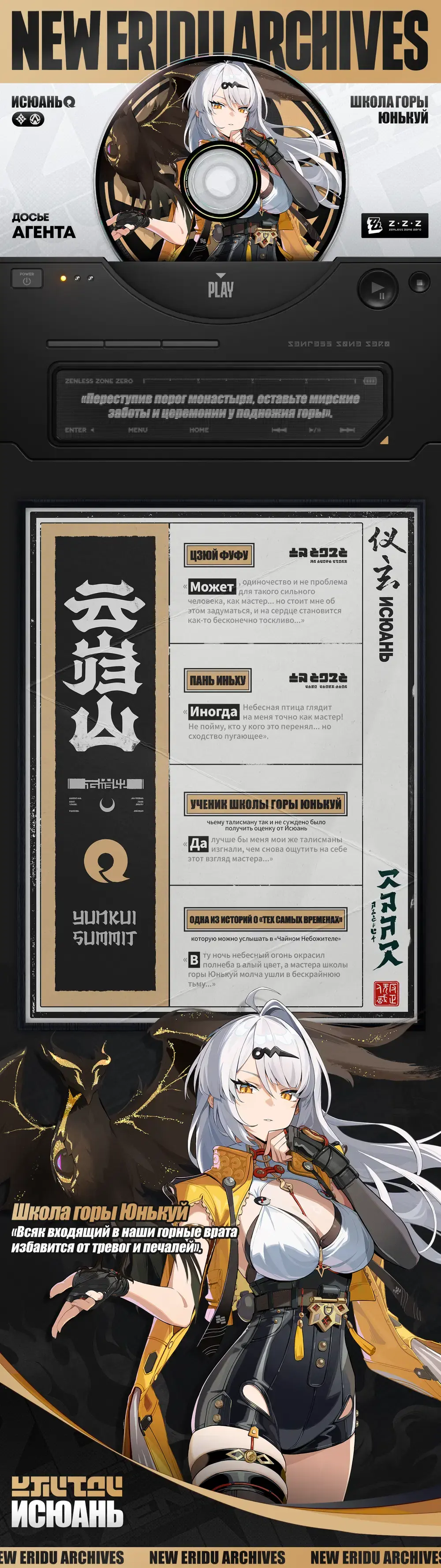Также показали Исюань — героиню S-ранга, её атрибут Эфир, а специальность пока под вопросом. Она тоже относится к фракции «Школа горы Юнькуй».