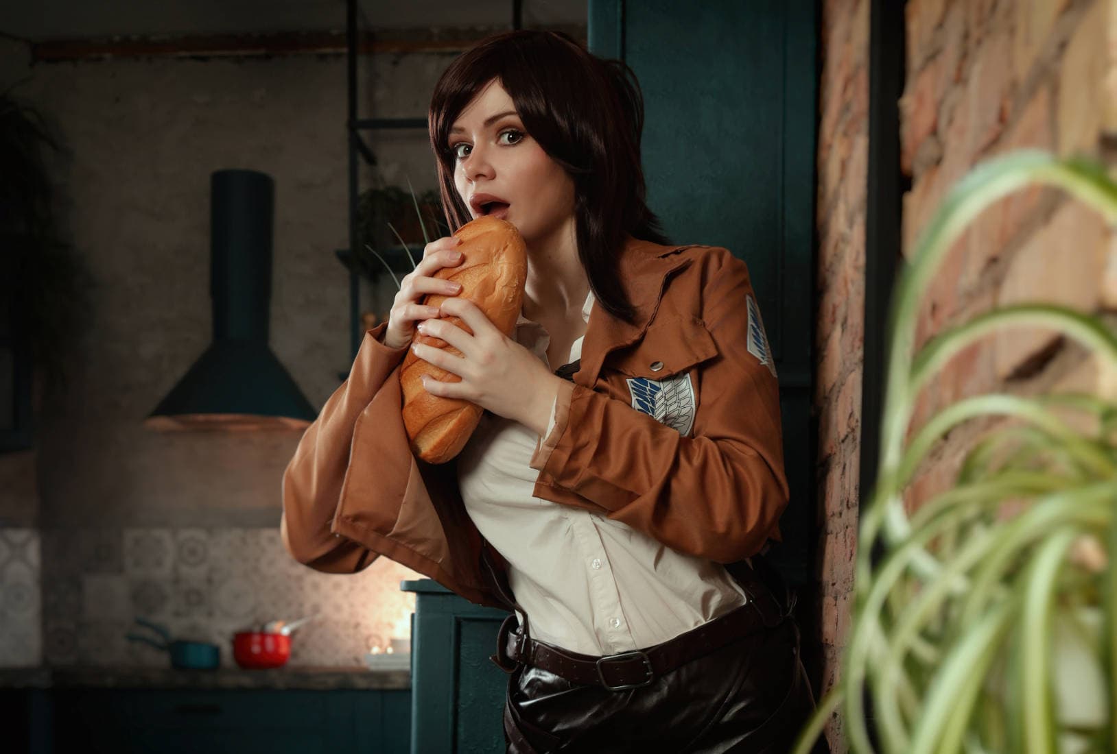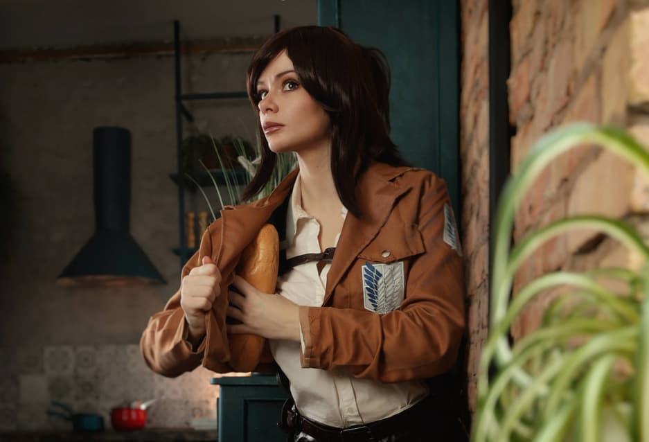 Косплеерше Ларе «Nix» Сергиенко удалось перевоплотиться в члена Разведкорпуса Сашу Браус из аниме «Атака титанов», которая решила расправиться с нарезным батоном.