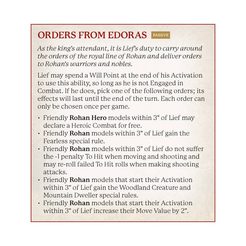 Этот персонаж, желающий присоединиться к армиям Эдораса, не является крутым мечником или самым быстрым наездником, но зато он обладает уникальной способностью передавать приказы короля своим союзникам, предоставляющие различные бонусы ближайшим юнитам.