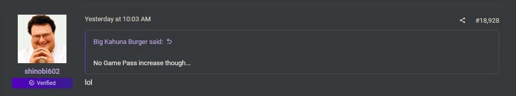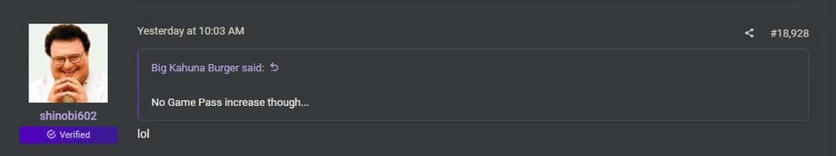 Некоторые пользователи обратили внимание, что подписка Game Pass осталась на прежнем уровне. Но информатор Shinobi602 лишь рассмеялся в ответ, намекая, что повышение всё равно грядёт. По мнению комментаторов, Microsoft может дождаться выпуска крупных игр — в том числе от внутренних студий — и только потом изменить стоимость подписки.