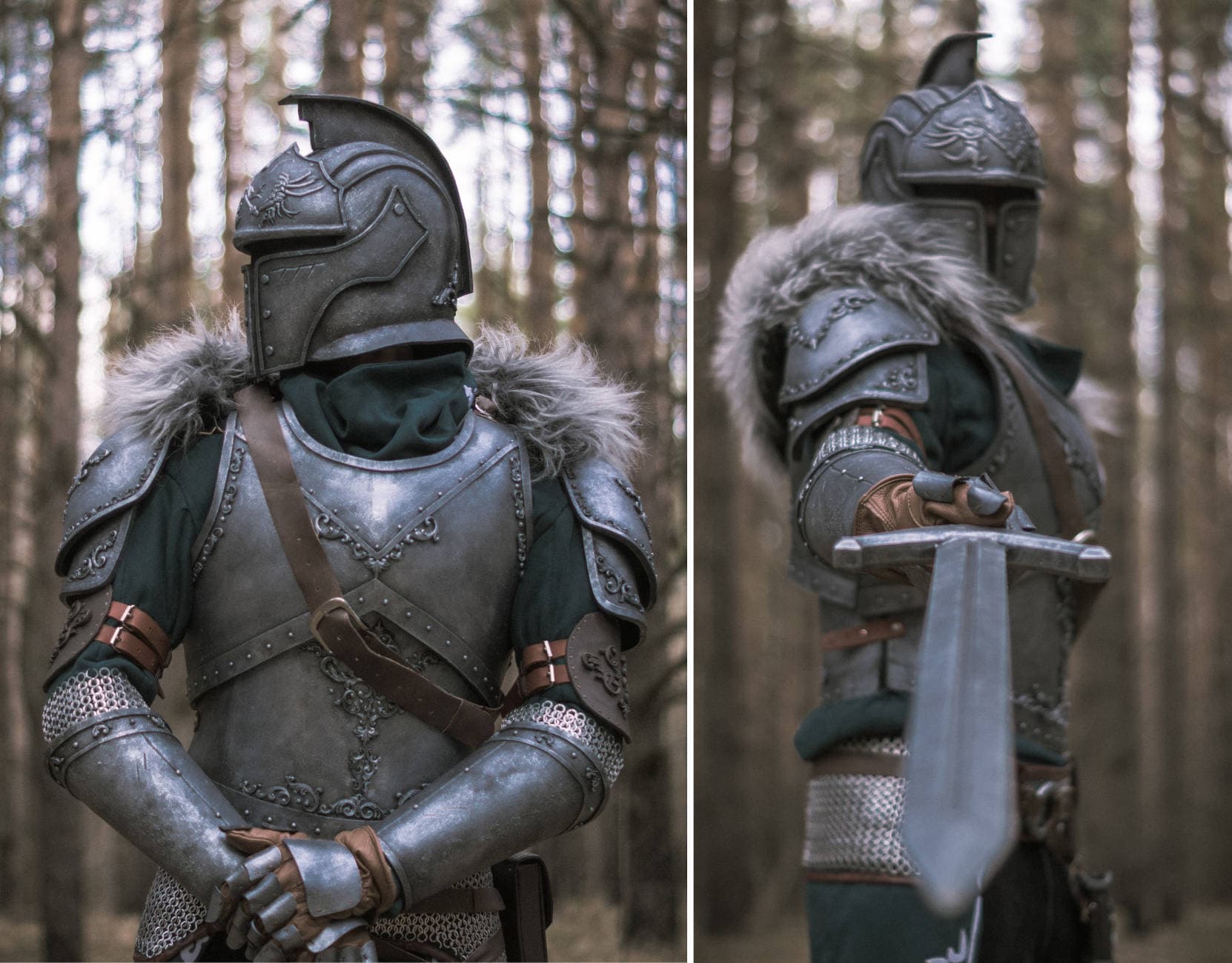 Косплеер вновь предстал в образе Проклятого (Носителя Проклятия), облаченного в сет Фараама. На этот раз отважный герой решил прогуляться по лесу Павших Гигантов, где запросто удастся повстречать множество опасных противников.
