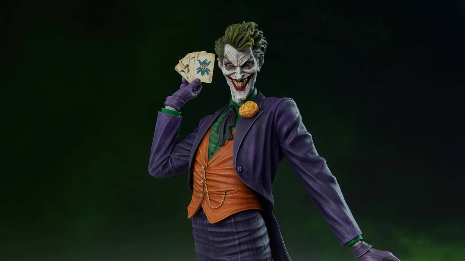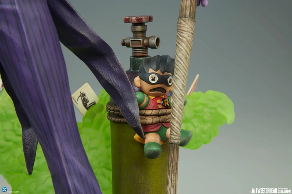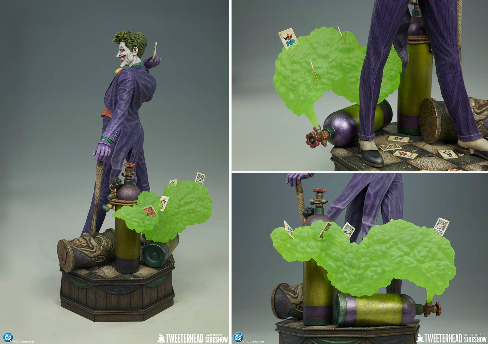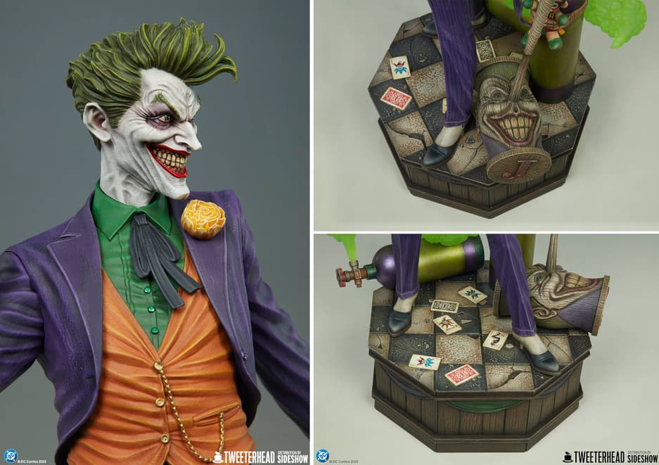 Высота этого коллекционного предмета равна 61 см, ширина – 36 см, глубина – 30 см. Статуя запечатлела момент, когда Джокер, держащий в руках карты, распыляет токсин, чтобы в очередной раз привлечь внимание Бэтмена и навредить жителям Готэма.
