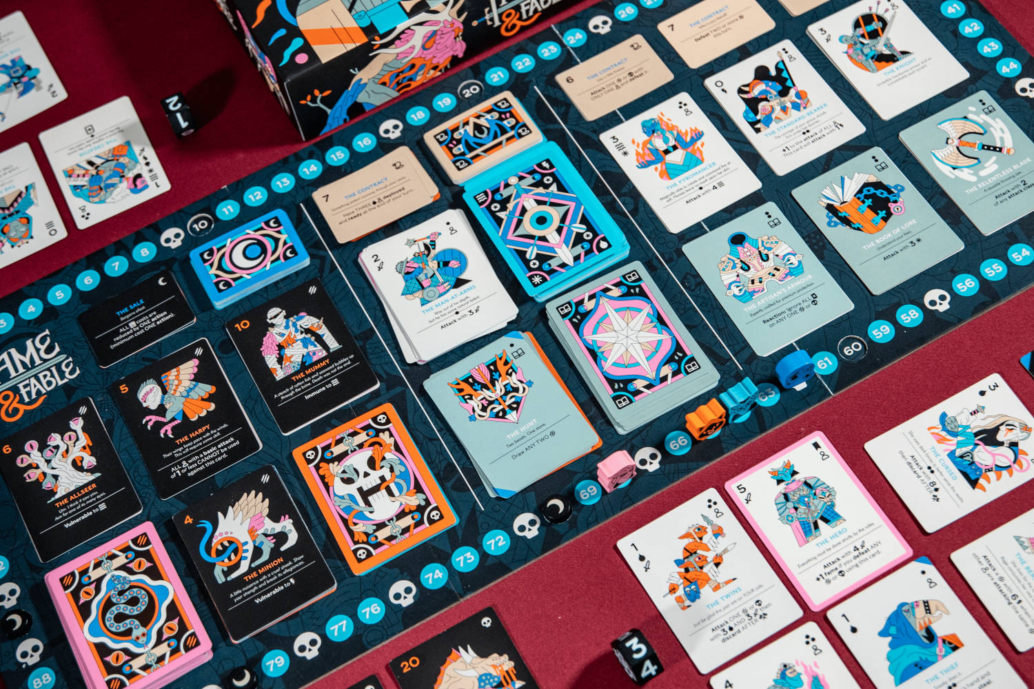 Первый, кто пересечет отметку в 100 набранных очков, запустит конец игры (всем придется в этой ситуации сделать по ходу, чтобы попытаться догнать и перегнать лидера). Сотрудники Choo Choo Games утверждают, что по ощущениям Fame and Fable похожа на «Тираны Подземья» или «В поисках Эльдорадо».
