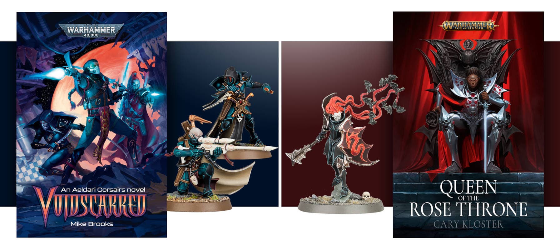 Издательство Black Library подарит любителям почитать четыре книги: Voidscarred (Покалеченные или израненные пустотой) от Майка Брукса, Queen of the Rose Throne (Королева трона роз) от Гэри Клостера, сборник Paragon of Faith and Other Stories (Парагон либо образец веры и другие истории) и Abraxia: Spear of the Everchosen (Абраксия: Копье Всеизбранного) от Криса Терстена.