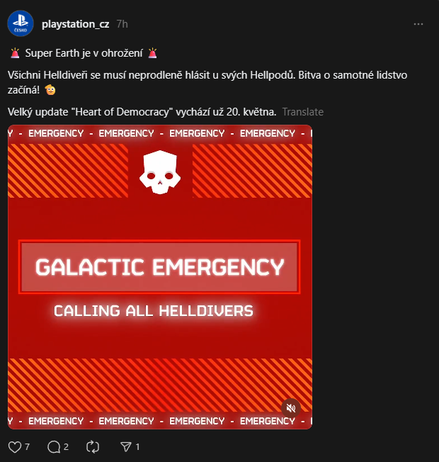 В сообществе Helldivers 2 стал распространяться скриншот чешского подразделения PlayStation. Судя по данному объявлению, планета в опасности и начнётся «битва за само человечество» — 20 мая якобы выйдет обновление Heart of Democracy и игрокам предстоит сражаться на самой Супер-Земле.