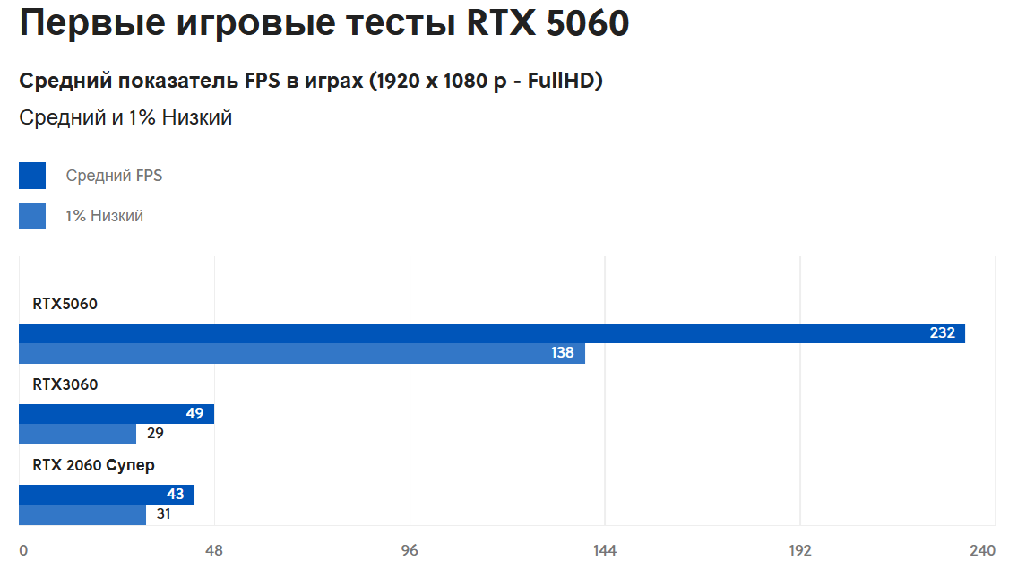 - Разрешалось проводить сравнение GeForce RTX 5060 только с RTX 3060 и RTX 2060 Super.