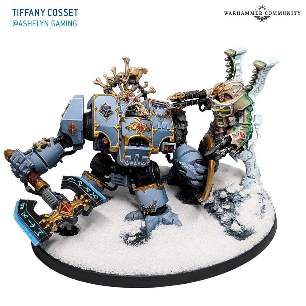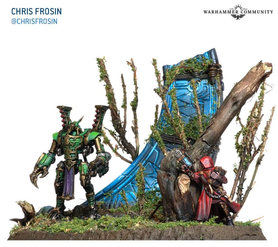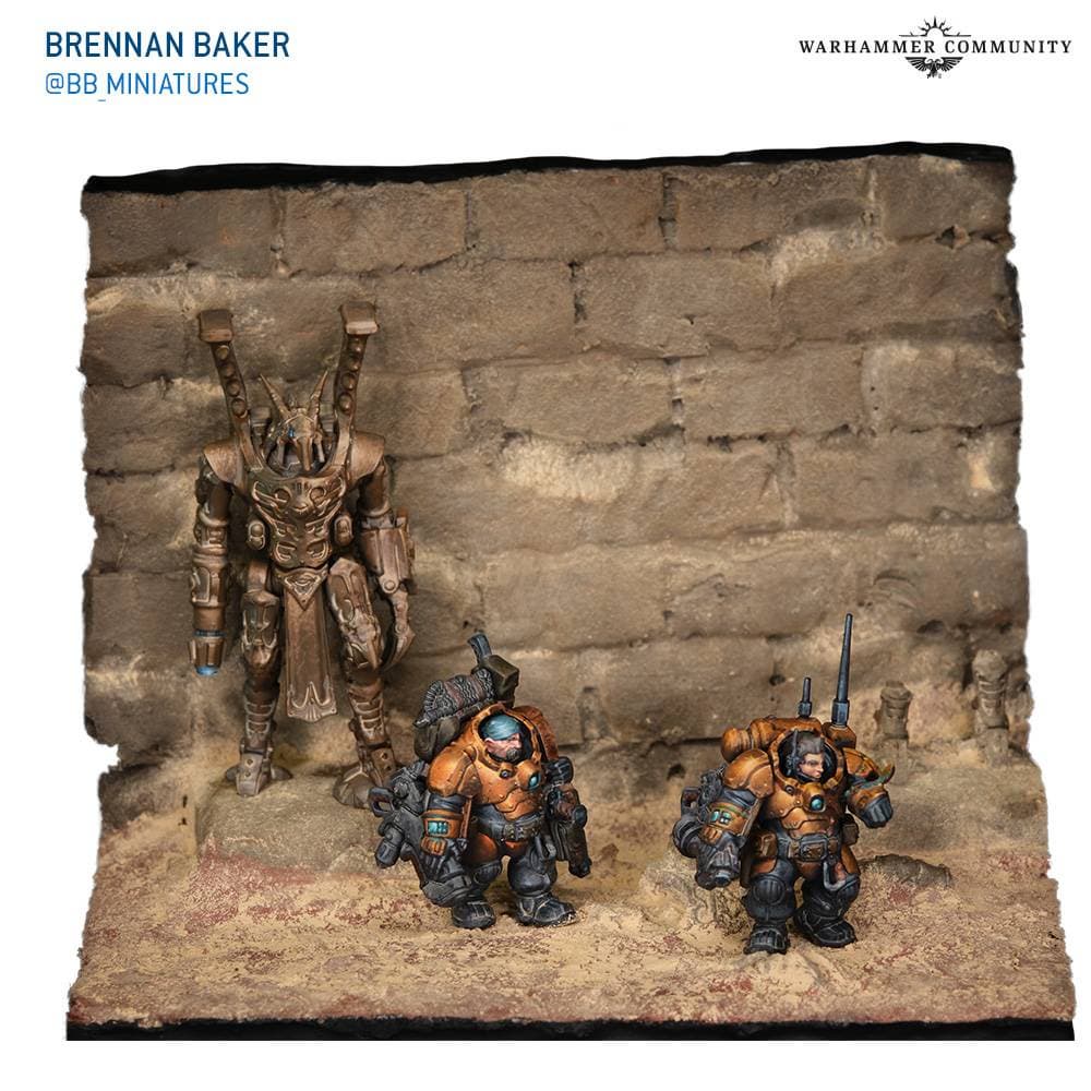 Чтобы подготовить людей к встрече с автоматонами Тысячи Сынов, сотрудники компании Games Workshop опубликовали фотографии с диорамами от фанатского сообщества художников, на которых засветились эти грозные юниты, выполняющие роль телохранителей и стражей важных локаций.