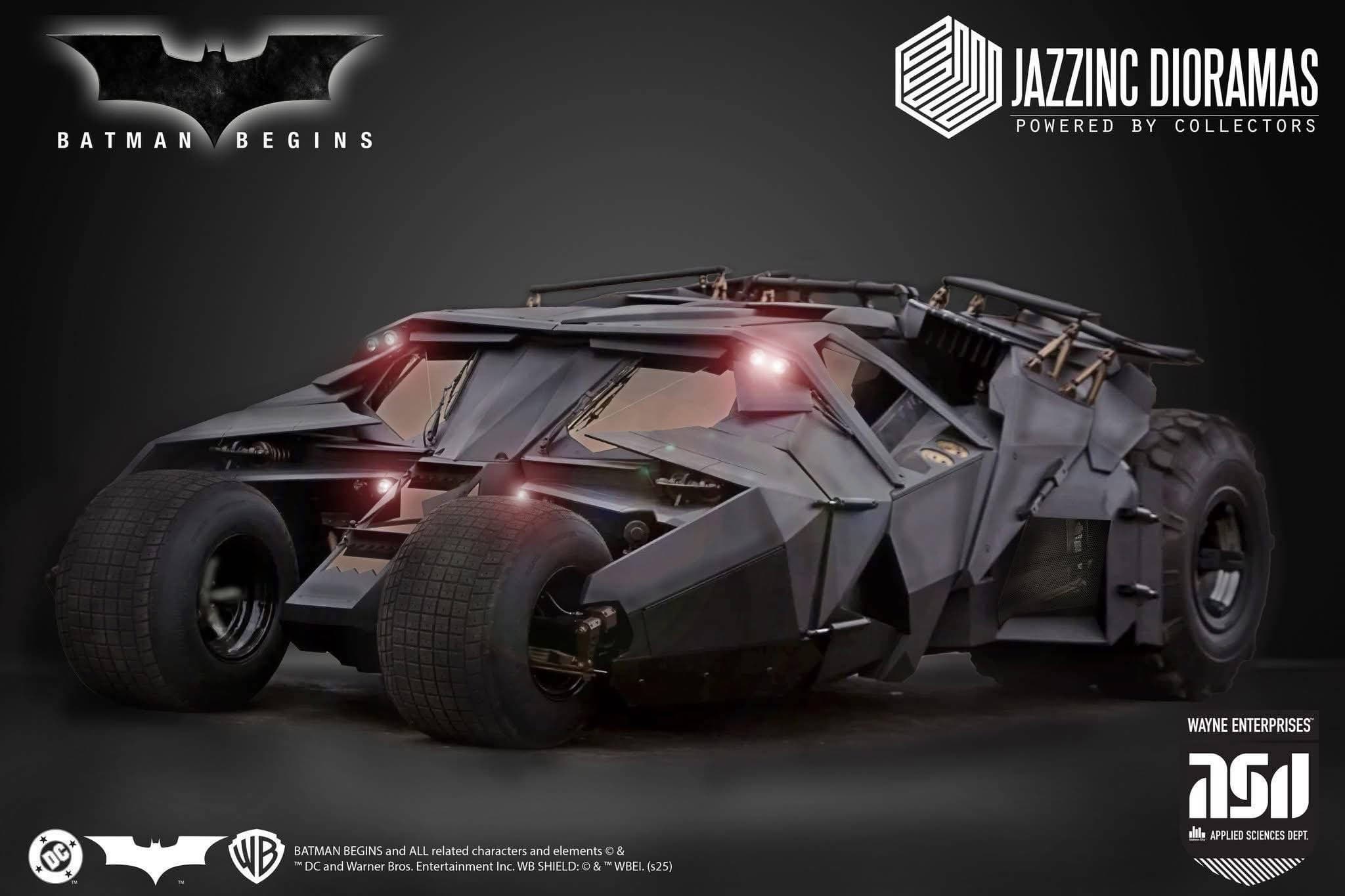 Люди, соскучившиеся по фильмам «Тёмный рыцарь: Возрождение легенды» и «Бэтмен: Начало», уже на этой неделе благодаря компании JazzInc Dioramas смогут предзаказать коллекционную модель бэтмобиля, выполненную в масштабе 1/6.