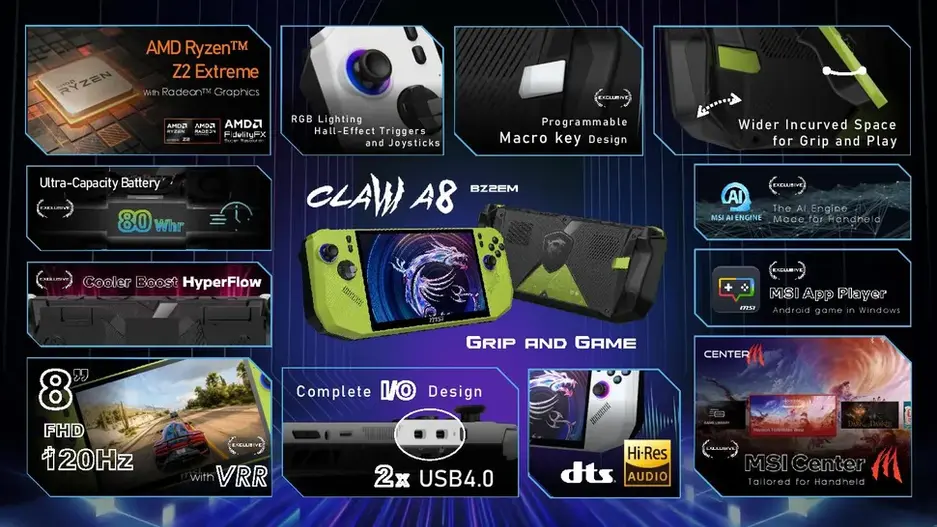 Claw A8 BZ2EM станет первым портативным ПК MSI с чипом AMD. Ранее компания делала ставку исключительно на Intel.