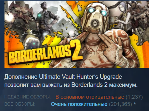 Геймеры начали атаковать игры Borderlands в Steam и оставляют негативные обзоры — поводом послужило видео блогера Hellfire. Он затронул тему изменения пользовательского соглашения, например в плане вопросов безопасности пользовательских данных. Ему кажется, что за ними «шпионят», запрашивая излишние персональные данные (на самом деле собирают вполне «стандартные данные», просто пользователи не всегда внимательно изучают соглашение).