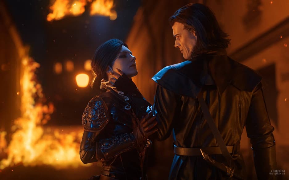 Модели Юра «Rebellion_San» Сангалов и Екатерина «Waters» Козина предстали в образах вампира Детлаффа ван дер Эретайна и разбойницы Сианны из дополнения «Кровь и Вино» для экшен-RPG «Ведьмак 3: Дикая Охота».