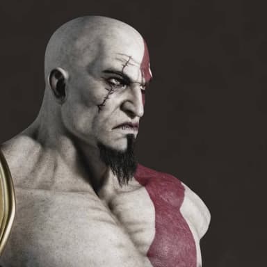 Кратос является лысым и мускулистым воином, протагонистом и антигероем серии игр God of War, убийцей богов и всевозможных фэнтезийных существ. На его тело нанесена большая татуировка в виде красной линии, пересекающая его торс, спину, левую руку и левую часть головы.