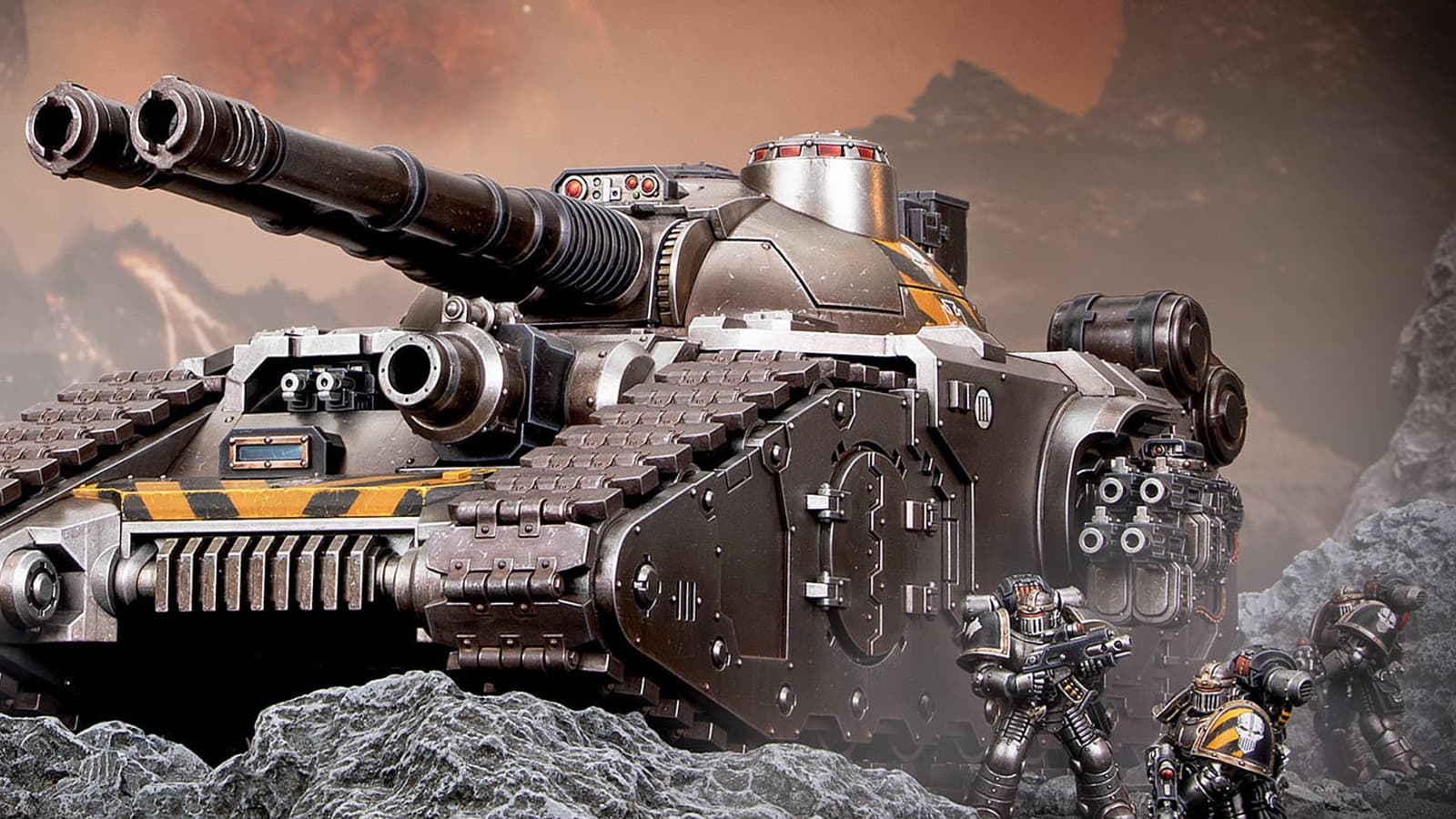 У людей будет возможность заполучить пластиковую модель сверхтяжёлого танка под названием «Разящий клинок», оснащенного лазерным пушками, тяжелыми болтерами и не только, и пластиковую турель «Тарантул», отлично подходящую для уничтожения пехоты.